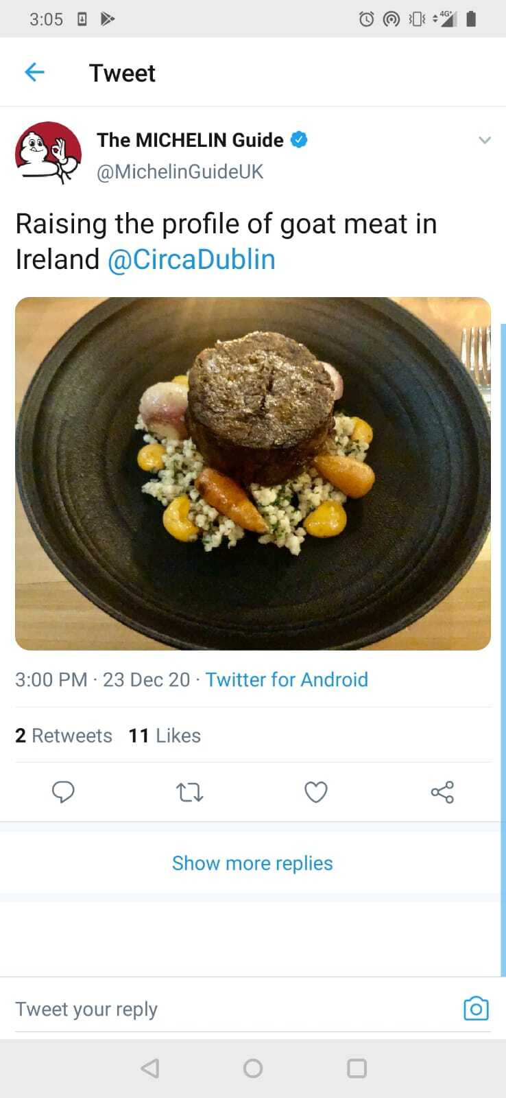 “When head chef Darryl Haynes lives around the corner from you in Blackrock, why yes, you can have dinner delivered from @CircaDublin in Terenure 😂 Thanks @RossCDuffy @emmetmurphy it was delicious. Just with the game pithivier was 👌 And thanks for confirming packaging is recyclable”